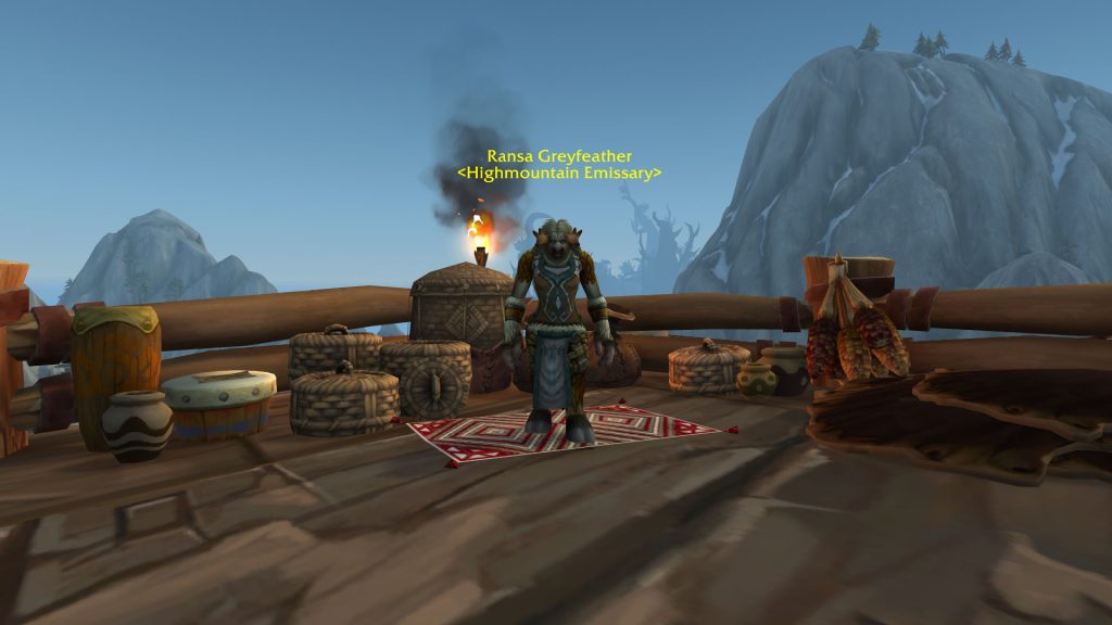 The tauren of Highmountain trade rugged hunter gear, spirit totems, and the Highmountain Elderhorn once you keep Thunder Totem defended throughout Remix.